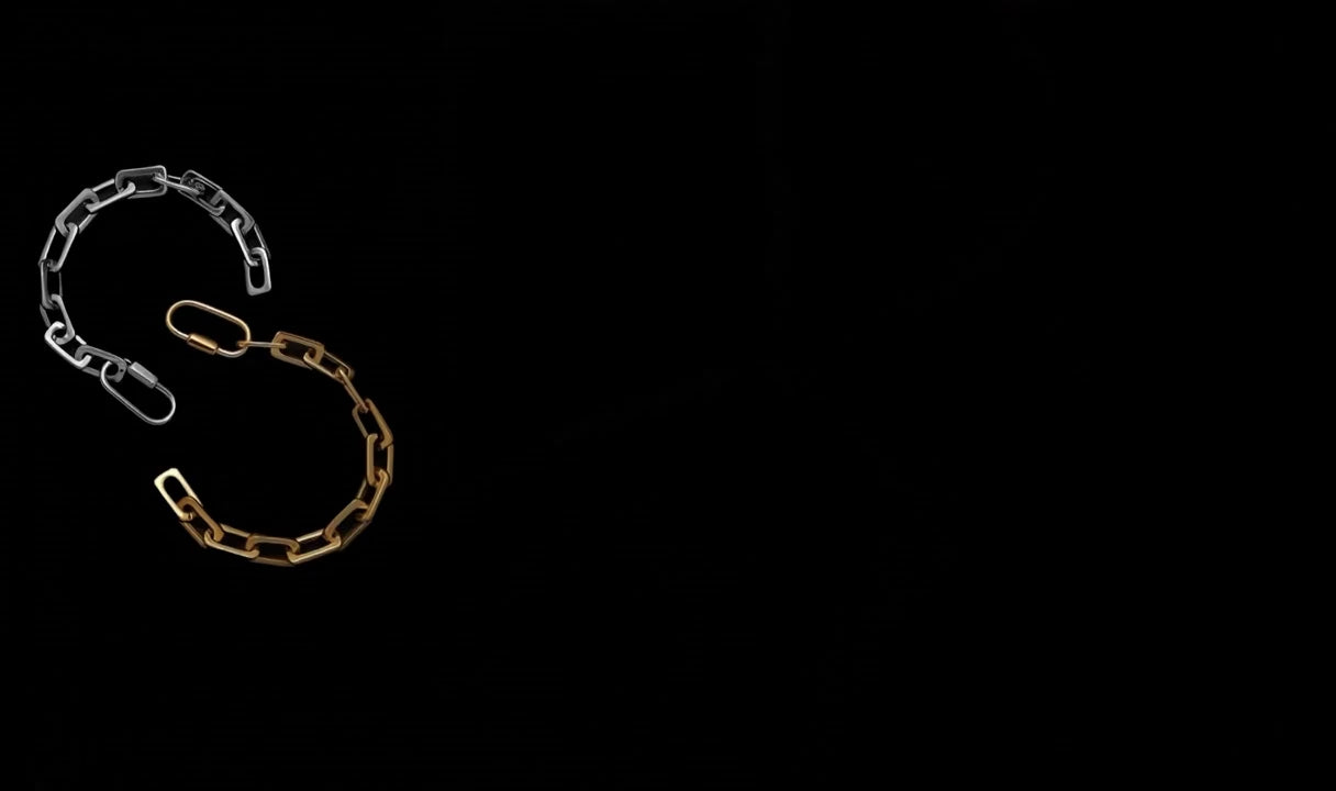 Its bold geometric links and sleek carabiner clasp strike the perfect balance between minimalism and power.
